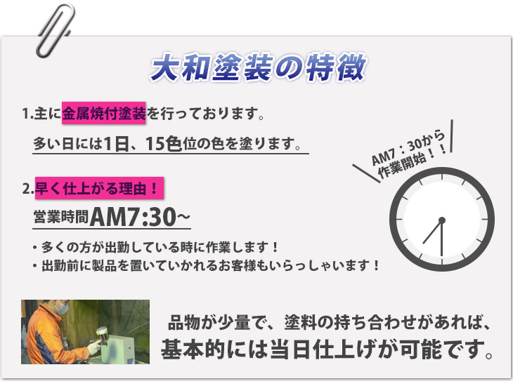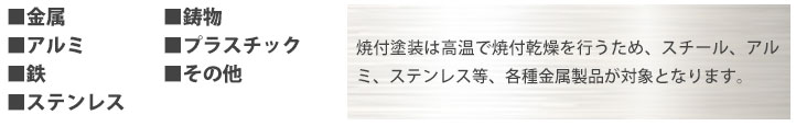 焼付塗装とは、製品に塗装したものを焼付乾燥炉の中に入れて高温で乾燥し、塗膜を形成します。 |